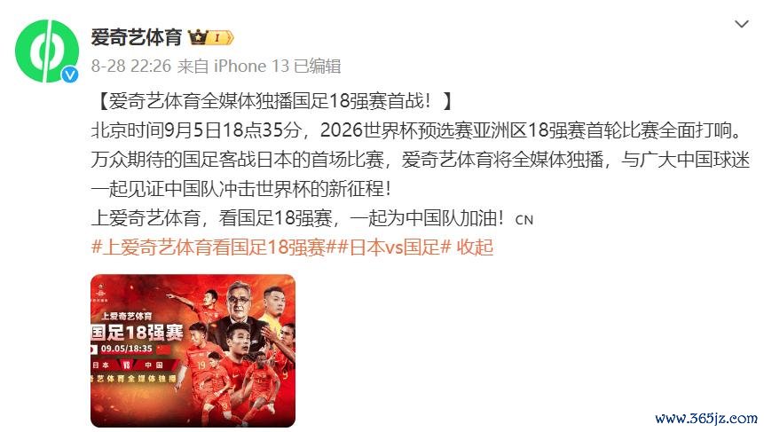 作为中国足协旗下的官方账号,“足球中国”社交媒体发文:“北京时间6月5日21:45,国际足联2026世界杯亚洲区预选赛第九轮-中国国家男子足球队将在雅加达格罗拉蓬卡诺体育场对阵印度尼西亚国家男子足球队。锁定以下转播平台,一起为中国队加油!”相关图片显示,爱奇艺体育、咪咕视频将免费直播本场比赛。
