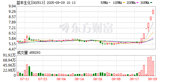 蓝丰生化盘中涨停,已连收6个涨停板红腾网,截至9:44,该股报9.45元,换手率24.41%,成交量6474.37万股,成交金额6.04亿元,涨停板封单金额为1.43亿元。连续涨停期间,该股累计上涨77.30%,累计换手率为118.76%。最新A股总市值达33.60亿元,A股流通市值25.06亿元。