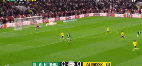 第35分钟,利雅得胜利再次与进球失之交臂,加奈姆一脚远射,球击中门框弹出。